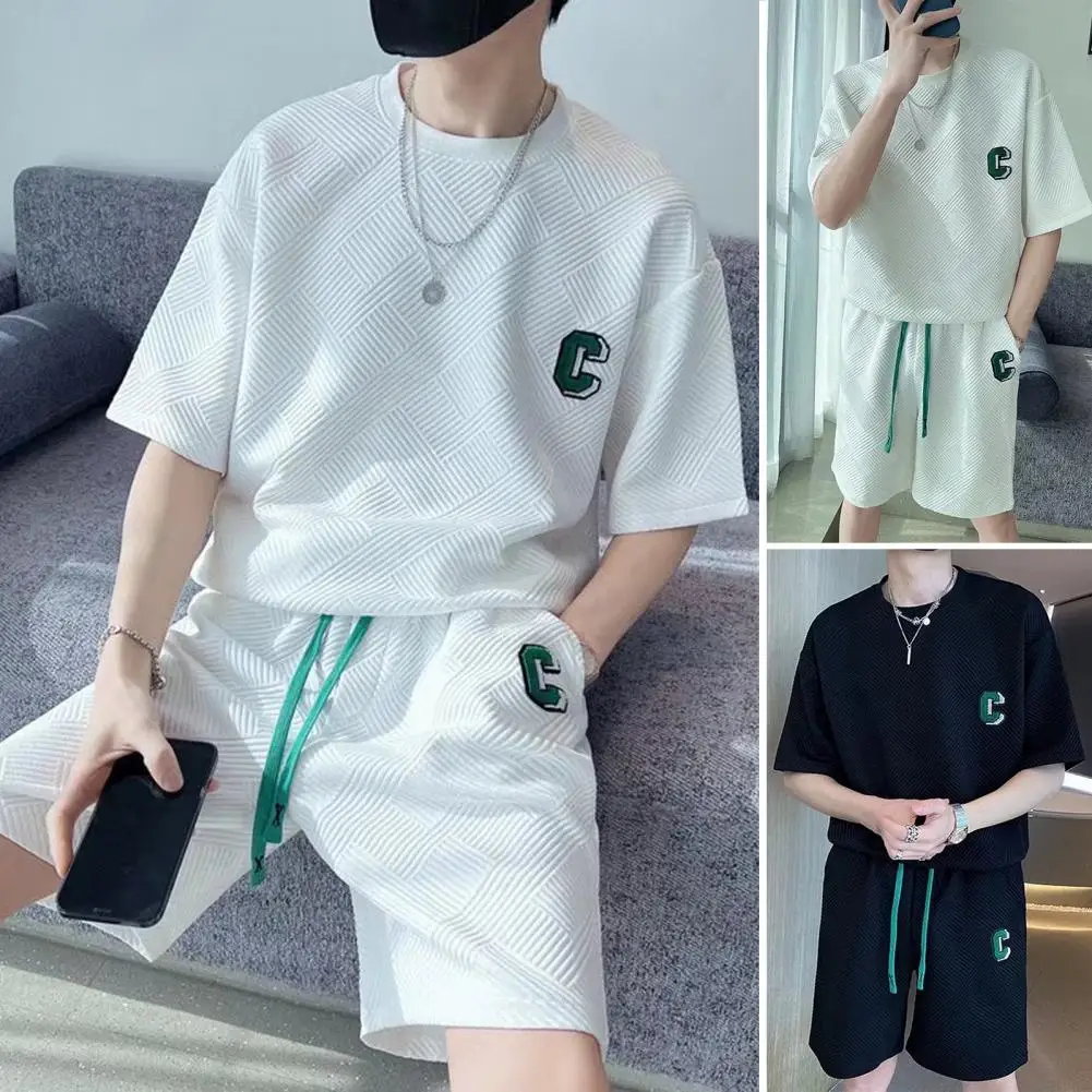 Костюм спортивный мужской с круглым вырезом, коротким рукавом и карманами, 2 шт./комплект
