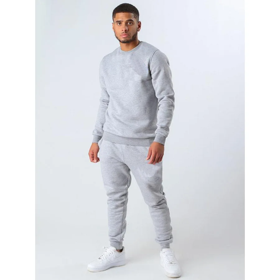 Костюм спортивный мужской с флисовой подкладкой, серый Модный повседневный комплект с толстовкой и штанами, с круглым вырезом, спортивная о...