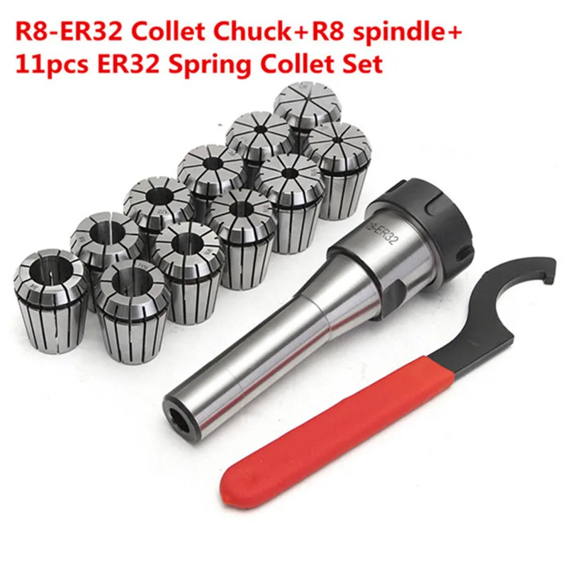 11pcs ER32 Spring Collet Set 3mm-19mm R8-ER32 7/16 Collet Chuck Holder Wrench