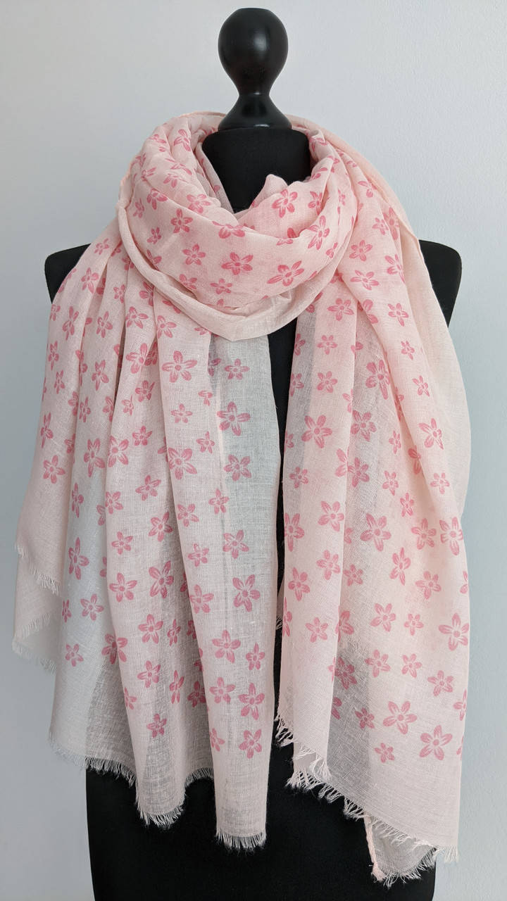 Стильний, легкий, котоновий шарф з квітковим принтом.