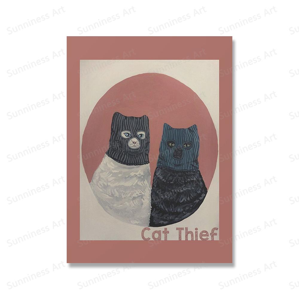Кот-вор в маске Минималистские принты на холсте Живопись Забавные постеры с животными Скандинавские настенные картины для гостиной Домашний декор 21x30cm No Framed белый