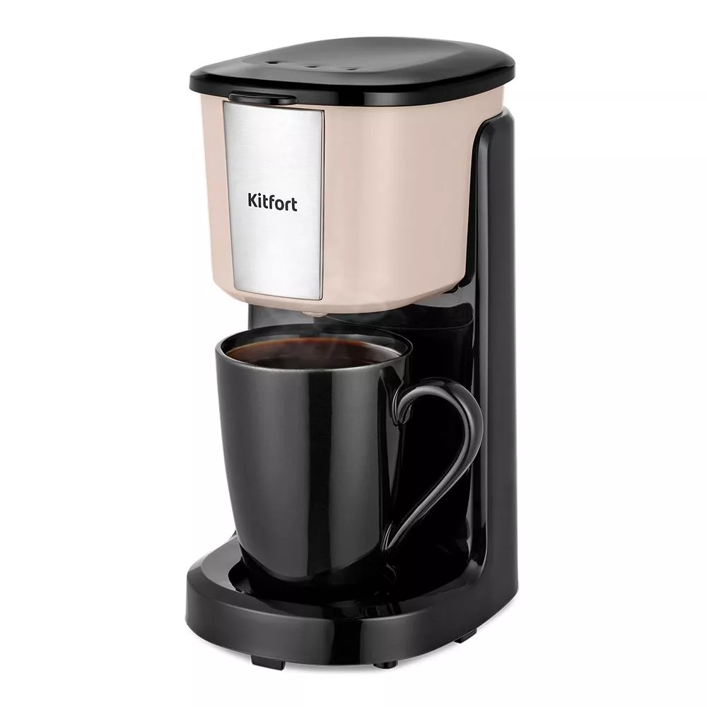 Кофеварка капельная Kitfort КТ-7402, 380 Вт, кофе молотый, 125 мл/125 мл, черный/бежевый (КТ-7402), КТ-7402