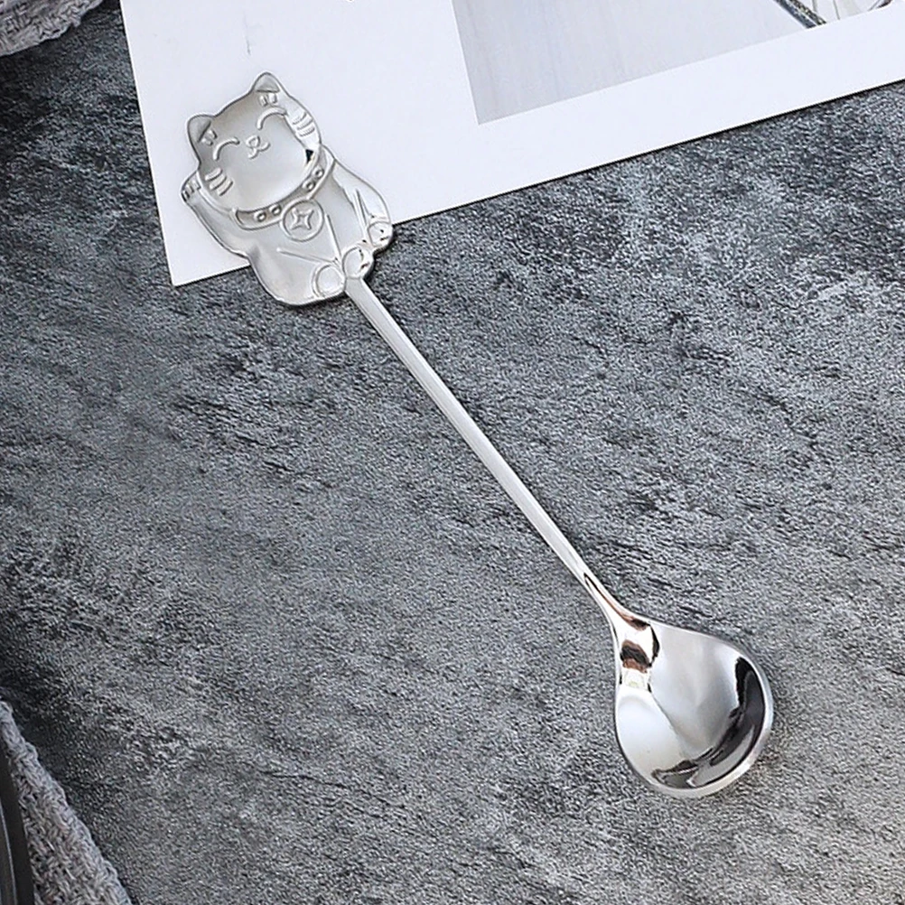 Кофейная ложка Luck Cat из нержавеющей стали 304, креативная десертная ложка для сахара, полированная, нескользящая, удобная ручка для чая, кофе