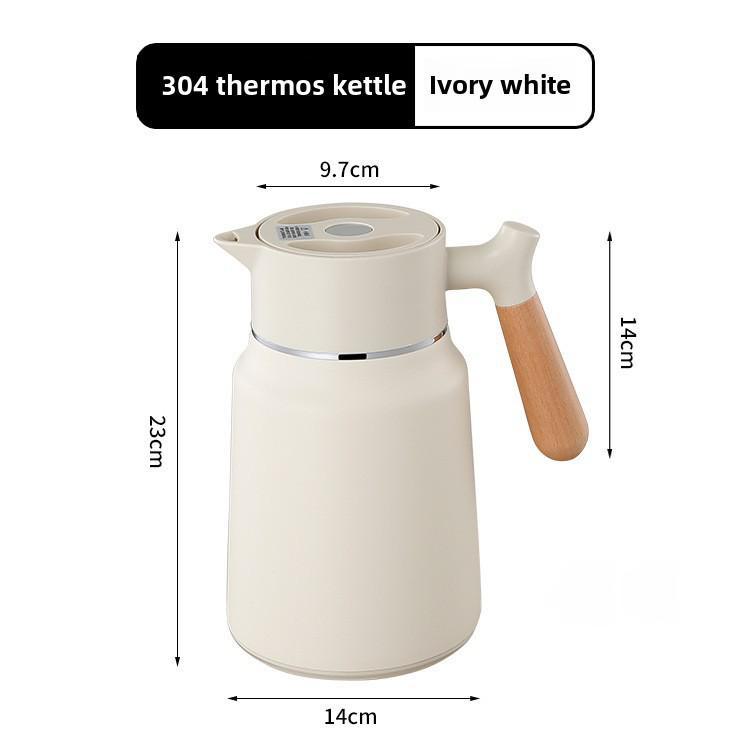 Кофейник из нержавеющей стали 304 с двухслойной изоляцией и деревянной ручкой 1500ml слоновая кость