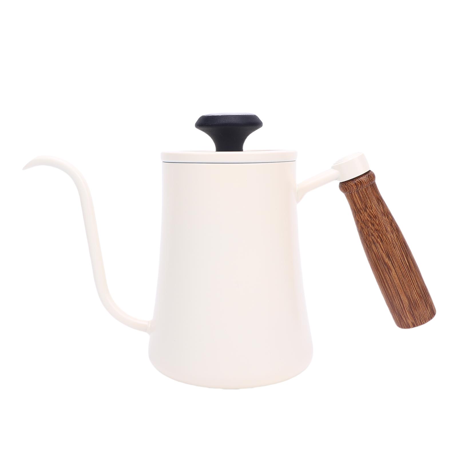 Кофейник 600 мл из нержавеющей стали 304, чайник для воды с термометром, деревянная ручка, длинный L(for 6.5-9kg) белый