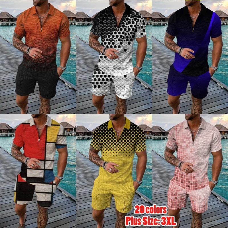 Футболка с коротким рукавом и шорты мужские, спортивный комплект, Повседневная Уличная одежда на молнии, пляжная одежда с 3D принтом