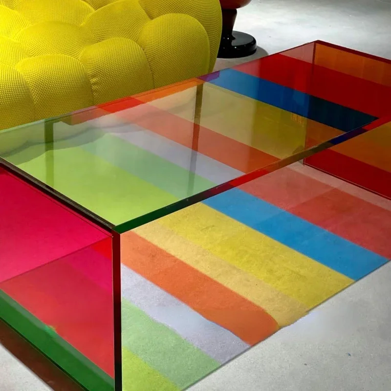 Кофейный столик из закаленного стекла в стиле интернет-знаменитостей с градиентом цвета для гостиной маленькой квартиры Скандинавский дизайн