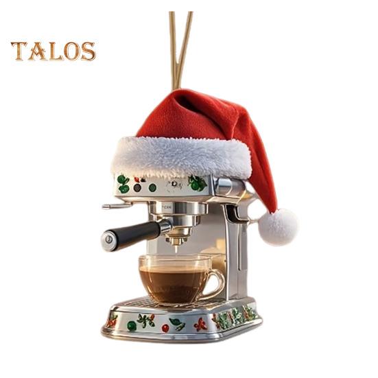 Кофемашина Рождественское украшение Акриловая шапка Санты Мини-кофемашина Подвеска Памятный праздничный автомобильный рюкзак Подарок для любителей кофе разноцветный
