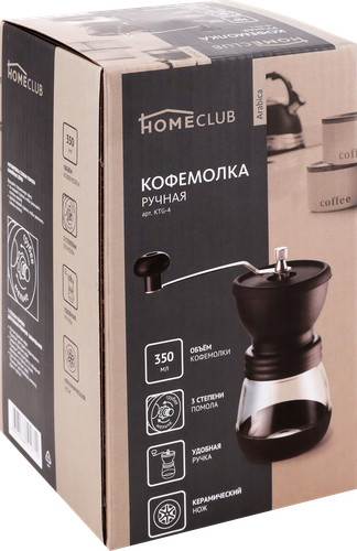 Кофемолка ручная Homeclub Arabica стекло, керамика, пластик 350 мл