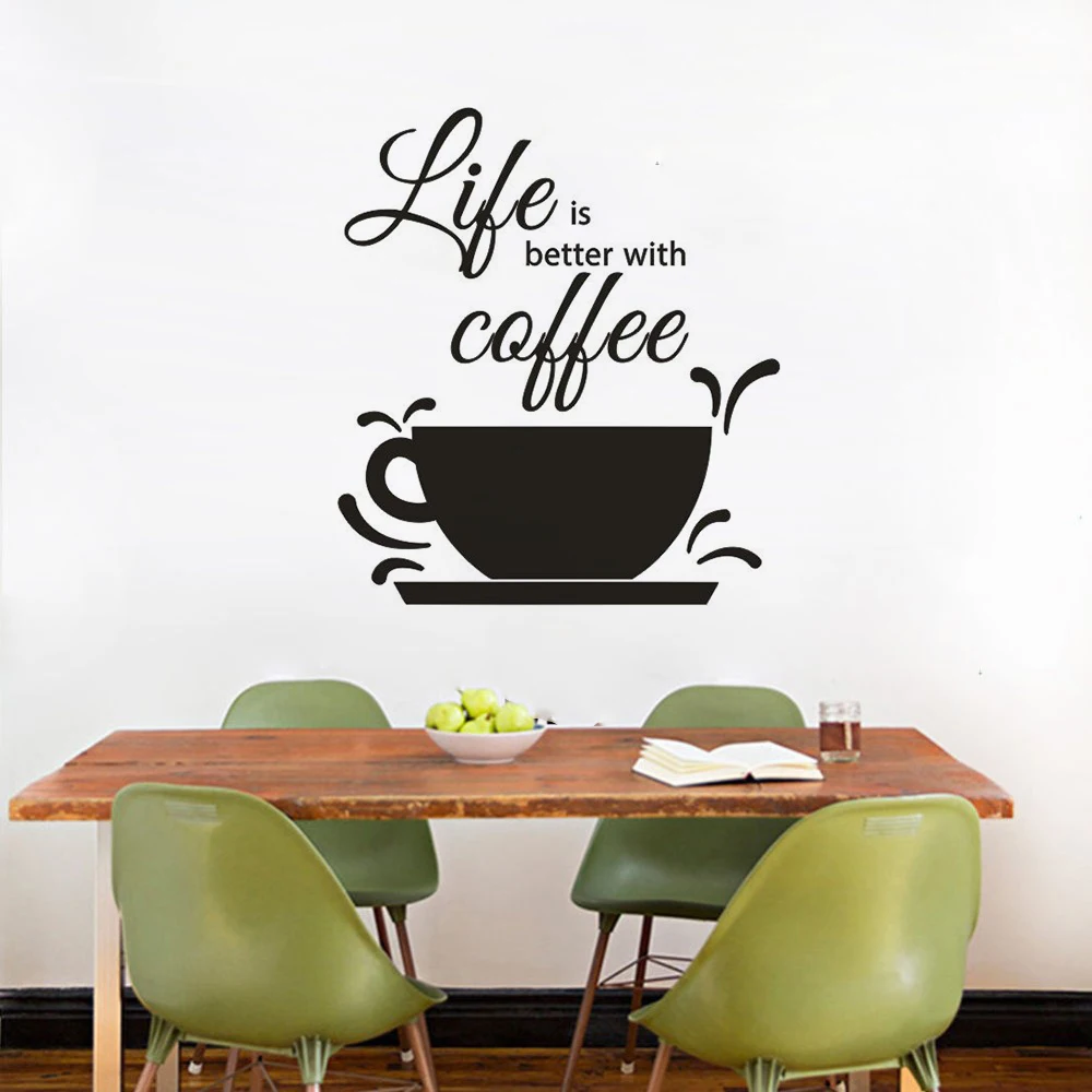 Кофе дизайн наклейки на стены кафе магазин украшения Кофе текст Наклейка на стену на окно жизнь лучше с Кофе Цитата настенная AY1615