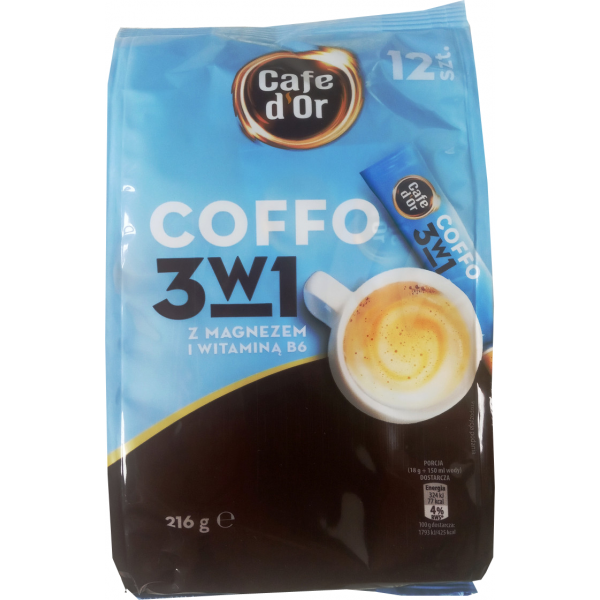 Растворимый кофе в стиках Coffo Cafe d'or. Каждая чашка – настоящее наслаждение! Отборный кофе и нежные сливки специально для тех, кто начинает свое утро бодро. Высокое качество, мягкий вкус и легкость в приготовлении.