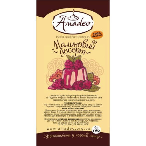 Кофе Amadeo "Малиновый десерт" в зернах 500 гр
