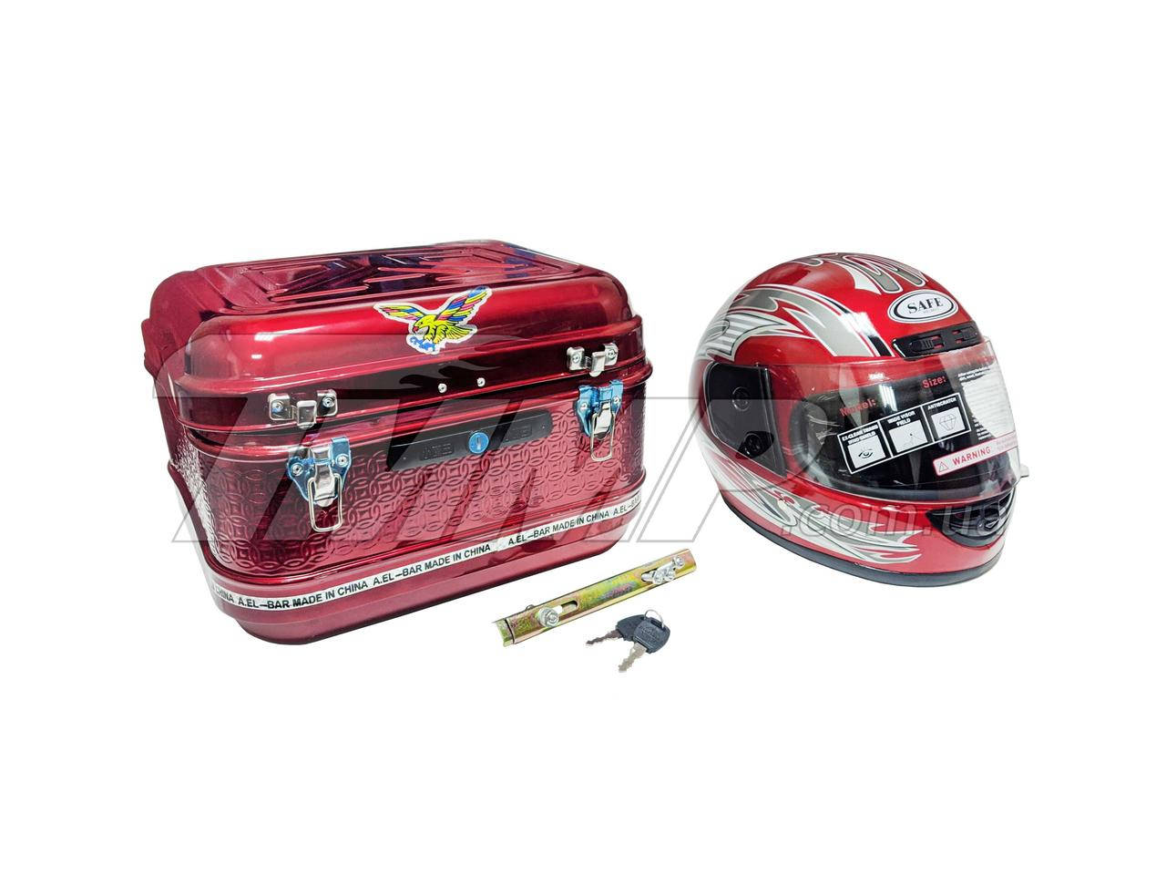 Кофр усиленный для мопедов и скутеров железная красная c шлемом