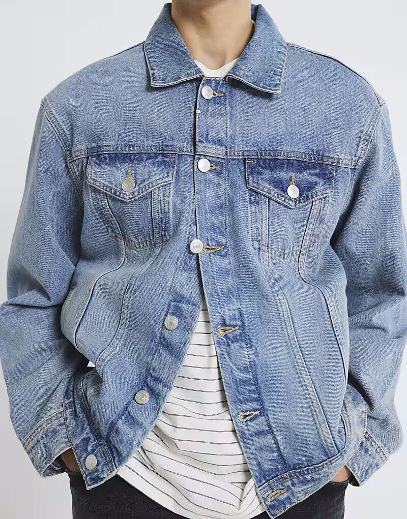 Джинсовая куртка River Island классического кроя синего цвета, Синий, Джинсовая куртка River Island классического кроя синего цвета