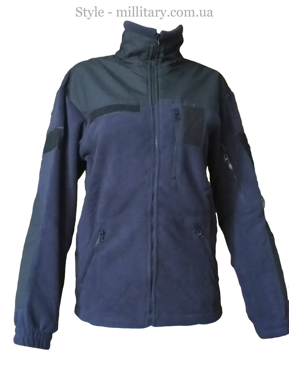 Кофта тактична флісова синя призначена для військових підрозділів, також може використовуватись в повсякденному житті. Просторова кофта з ефектом теплозбереження. Основні великі кишені на замку по боках та одна кишеня на груді з лівої сторони. На лівому рукаві наявна кишеня на замку та ліпучки для шевронів