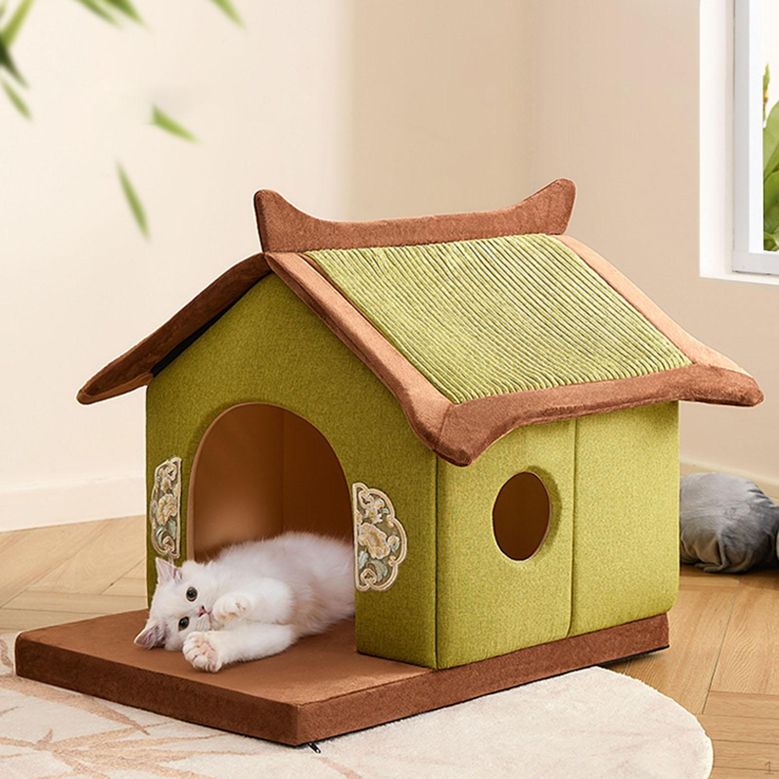 Кошачья кровать, домик, хижина, укрытие для котенка, нескользящая, съемная, моющаяся, для кролика, котенка, щенка, удобная пещера S