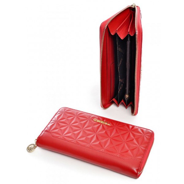 Женский кожаный кошелек. Размеры: 18 × 9 × 3 см. Цвет красный. 3 отделения для купюр. Одно отделение на молнии. 9 карманов для карт.