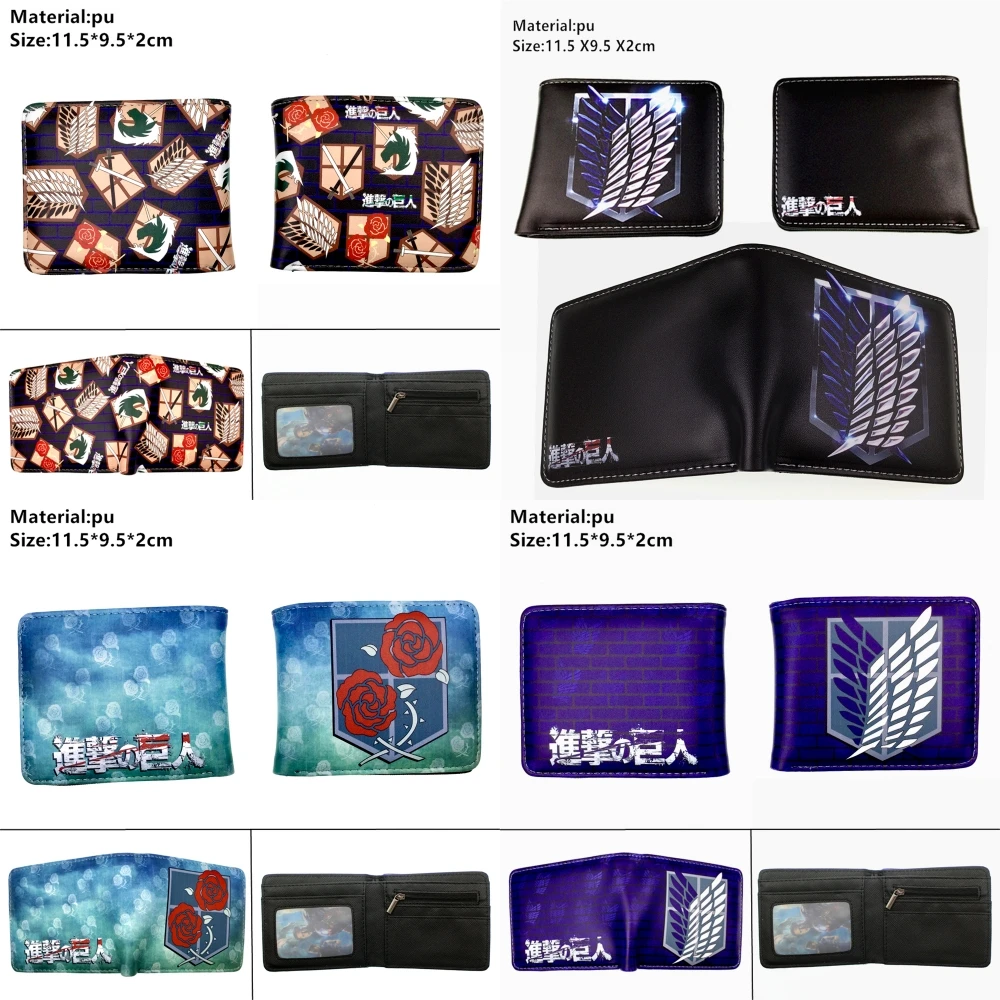 Кошелек из искусственной кожи для мальчиков и девочек, короткий бумажник с аниме «атака на Титанов», складной держатель для монет и карт на ...