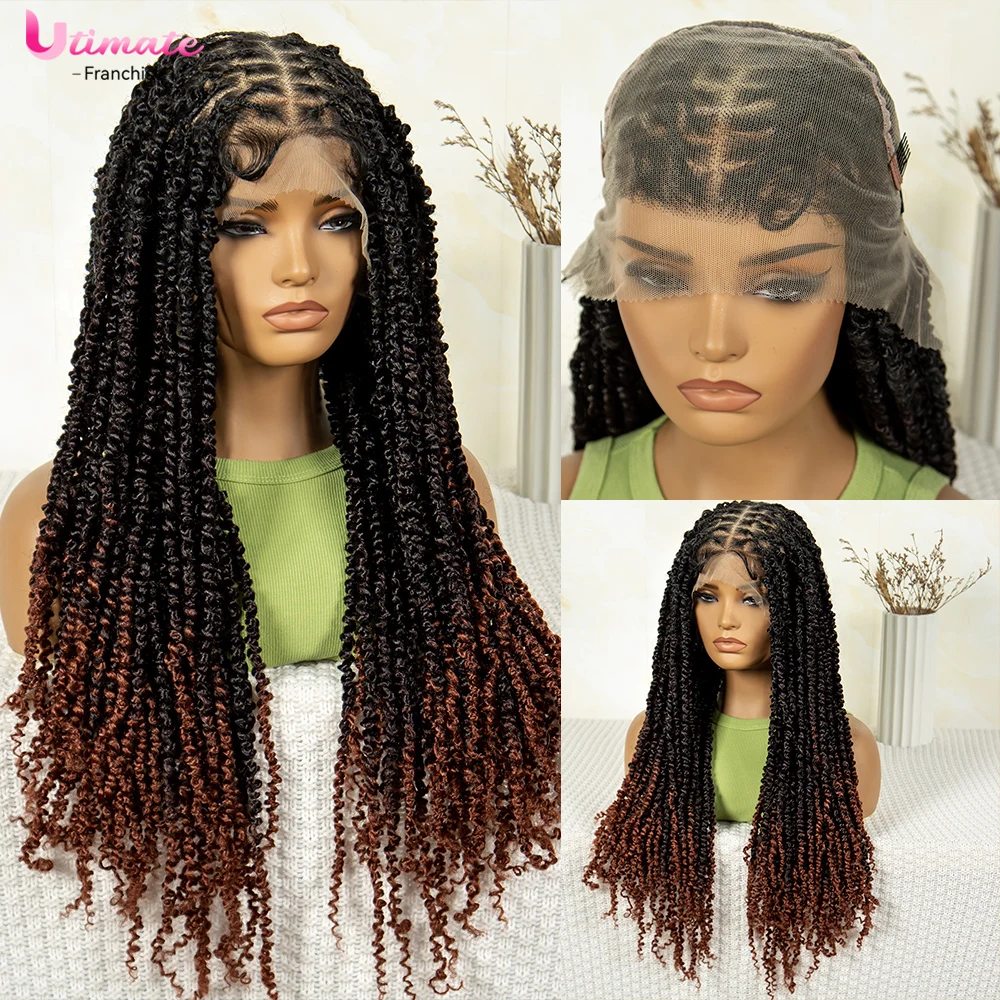 Твист-плетеные парики для женщин Синтетический парик Полный кружевной парик с косами в коробке с детскими волосами Цвет омбре Рыжий дреды Плетение волос