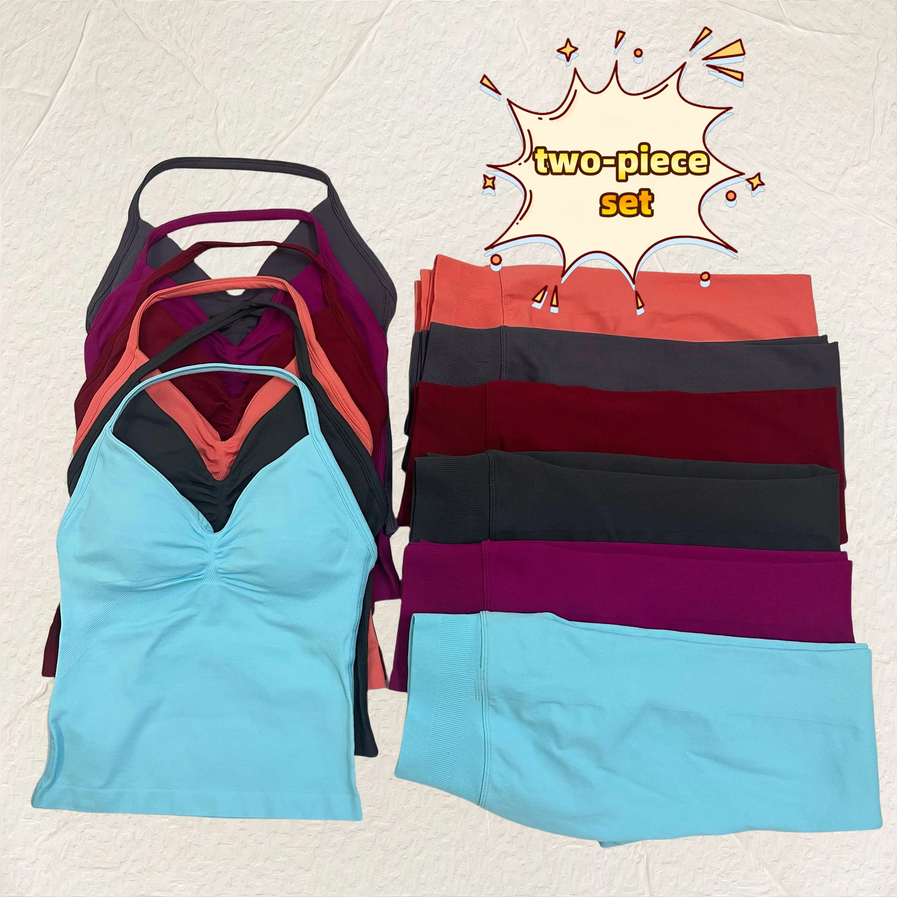 Комплект из 2 предметов для йоги, летний женский жилет для йоги длиной до шеи, шорты с подтяжкой бедер, удобный эластичный комплект, 2025 г., упражнения в тренажерном зале и фитнес