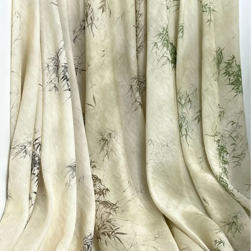 Зеленый, серый, коричневый, новый китайский стиль, розово-зеленый ацетатный принт, легкая дышащая блузка из растительного волокна, весна-лето