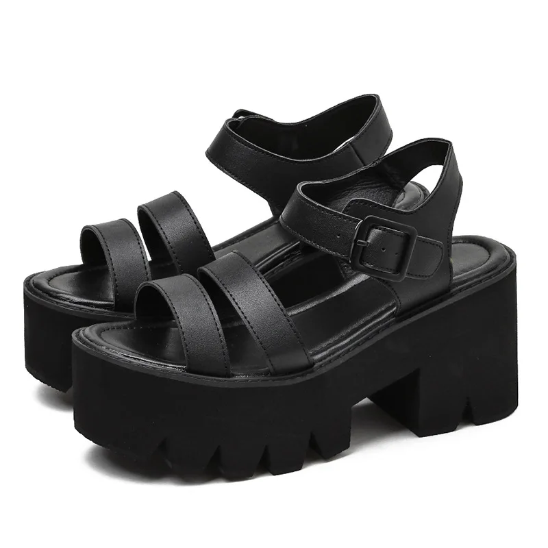 Босоножки Comemore женские на платформе, кожаные сандалии на блочном каблуке, в готическом стиле, повседневная обувь на танкетке, черные, лето ...