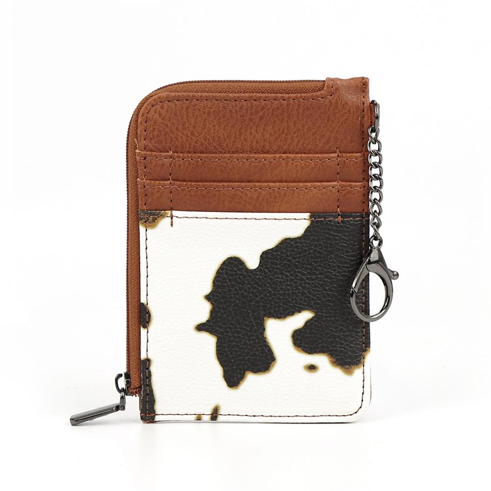 Кошелек с держателем для кредитных карт с принтом коровы, женский, маленький, милый, с брелоком, с карманом на молнии, тонкий, в стиле минимализма коричневый