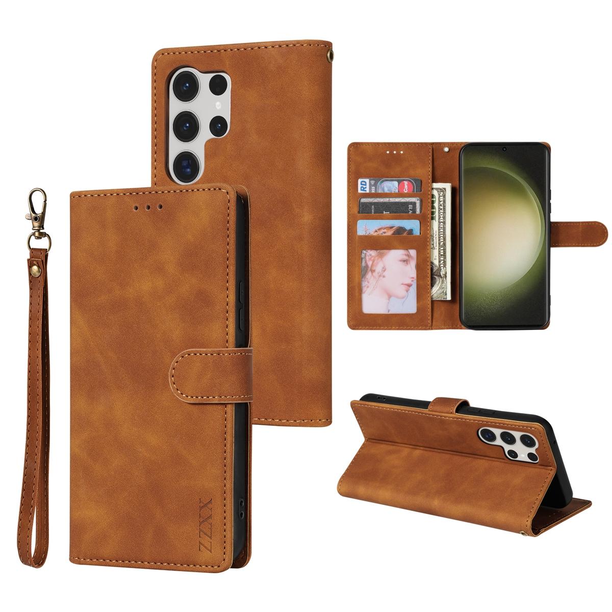 Кошелек с удобным для кожи отделением для карт магнитный флип кожаный чехол для Samsung Galaxy S24 Ultra S23 S22 Plus S21 S20 FE S10 S9 S8 чехол Galaxy S24&Case & Strap коричневый