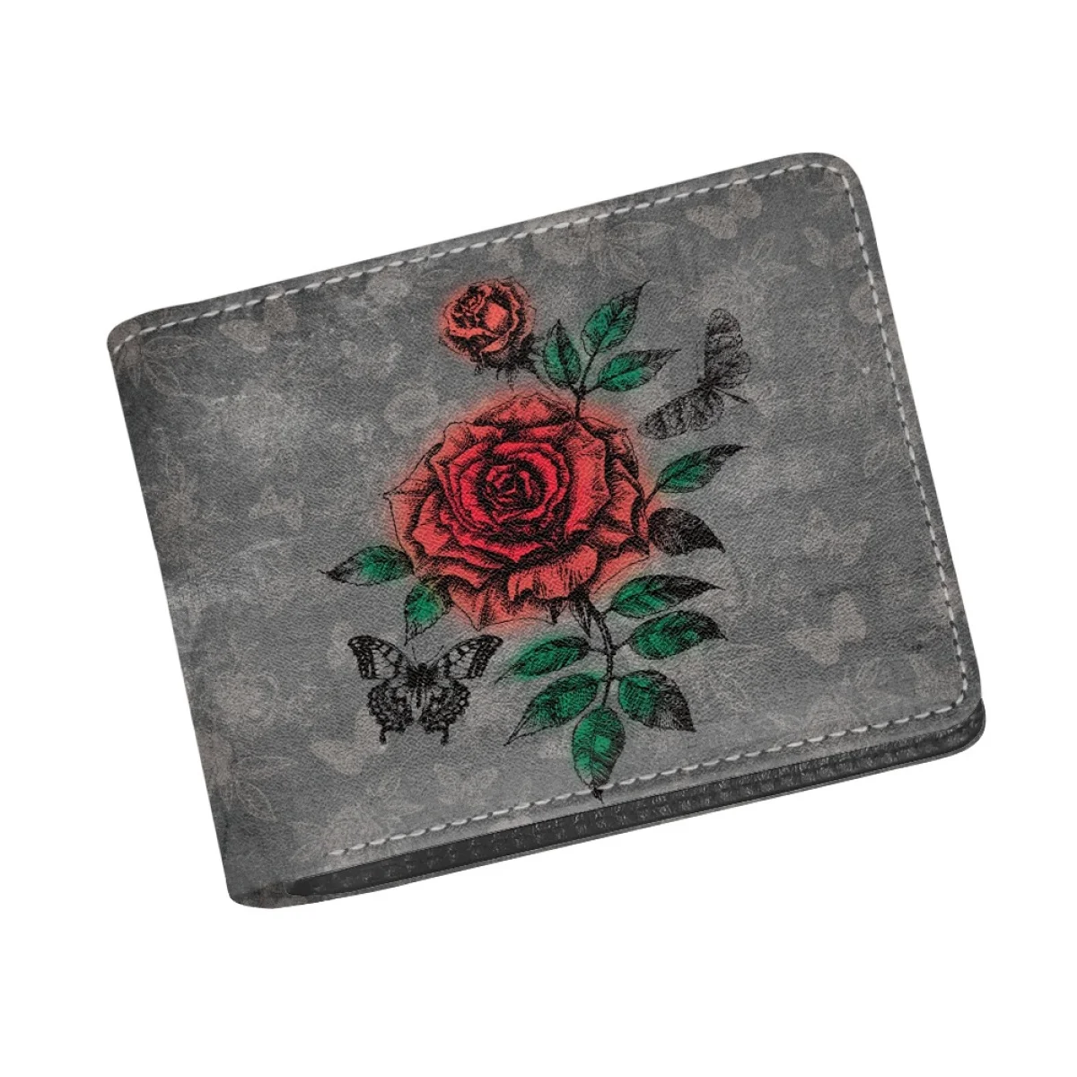 Кошельки для мужчин с принтом в виде роз и бабочек, кошельки с несколькими отделениями для карт, складные мужские кошельки на заказ, кошелек женский