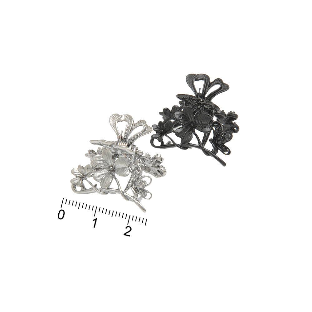 Крабик металлический небольшого размера в виде цветка. Размер крабика: длина 2,8 см; высота 1,5 см. Такой вид краба очень хорошо держит волосы, т.к. зубья между собой соединяются и получается еще большее сцепление. Краб подойдет для захвата небольшого объема волос. Крабики двух цветов: тёмное серебро и чёрные.