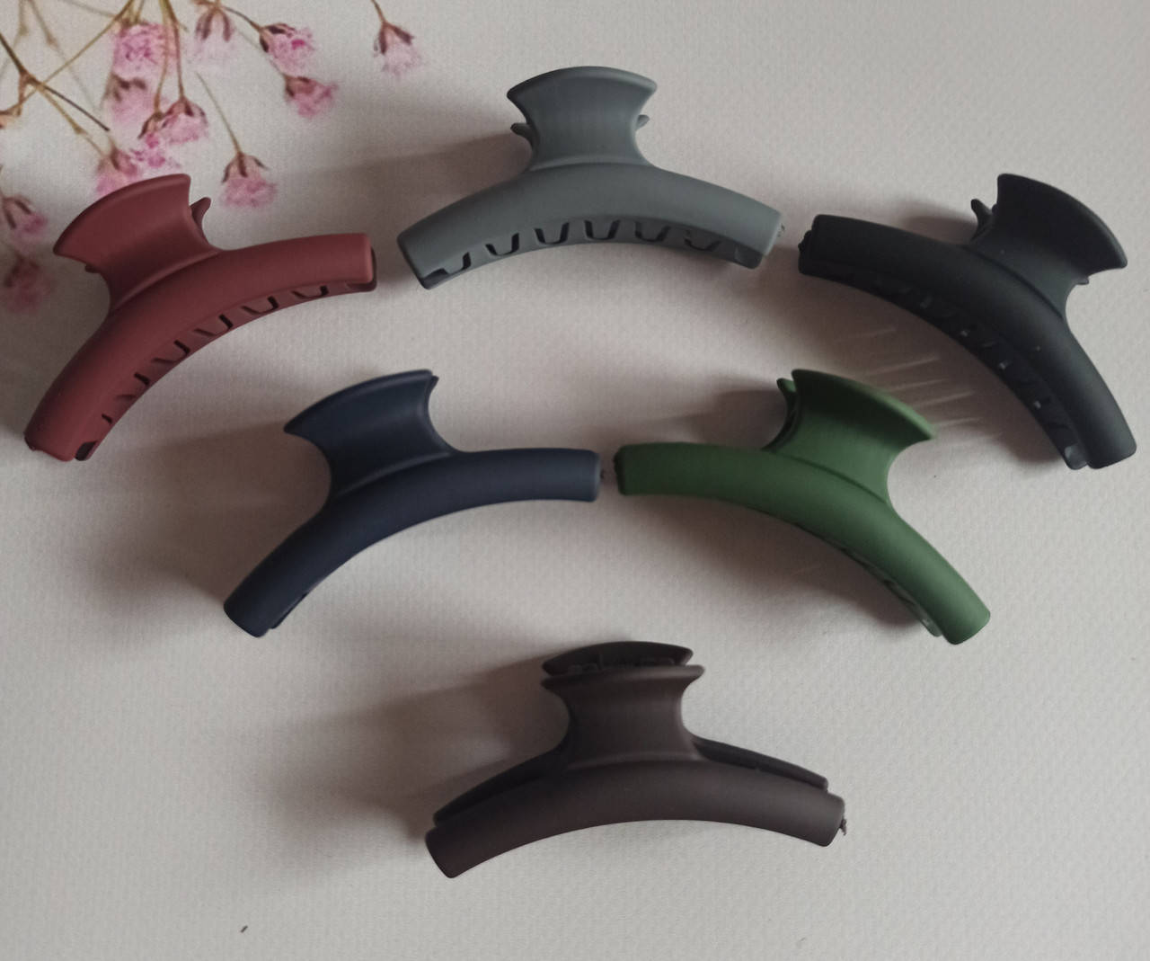 Краб "каучуковый" дуга тёмных цветов. Он жесткий, очень хорошо удерживает волосы и красиво смотрится на них. Объем волос ― тонкие или на "мальвинку" для любой густоты. Длина краба 7 см, высота 2,5 см.