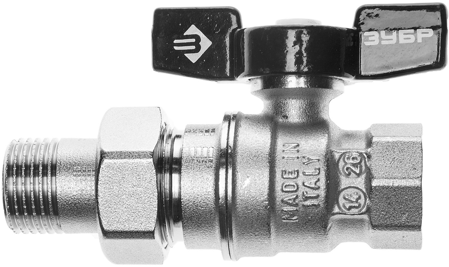Кран шаровый прямой Зубр ЭКСПЕРТ 1/2"x1/2", ВР/НР, с американкой, Латунь ЛС 59-1 (4-51327-C-1/2)