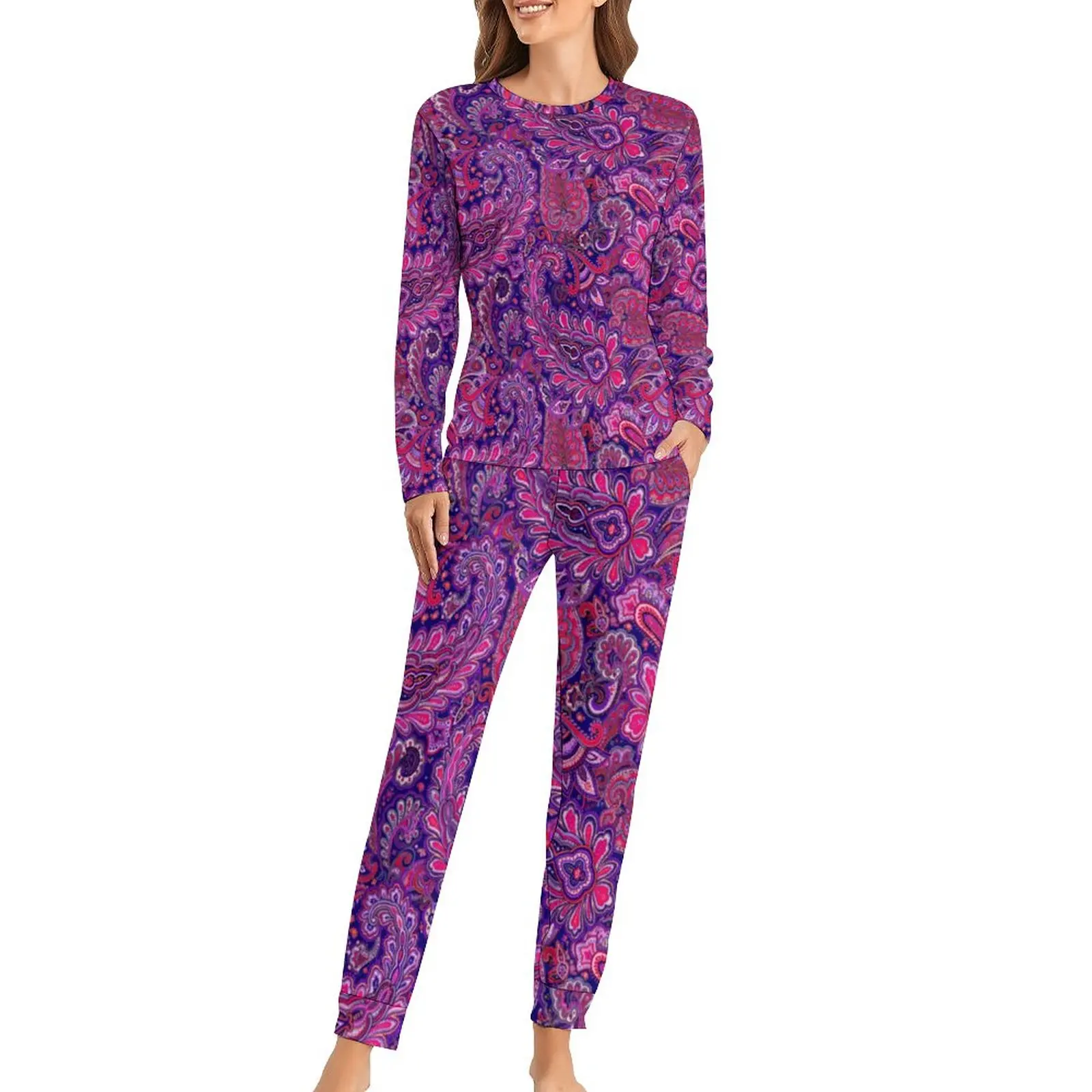 Красивая Пижама с принтом пейсли, Весенняя винтажная дизайнерская свободная Ночная рубашка большого размера, женские модные пижамные комплекты с длинным рукавом на заказ