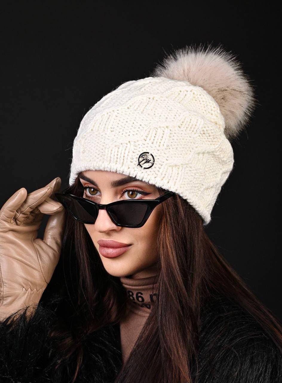 Красивая вязаная женская шапка, читайте ОПИСАНИЕ ТОВАРА, Молочный