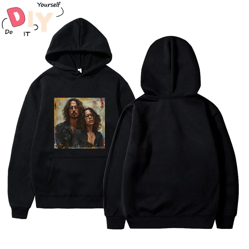 Красивая женщина с волнистыми волосами и очками стоя с Крисом кунеллом вирусная с круглым вырезом хлопковая Спортивная Толстовка Gildan для мужчин