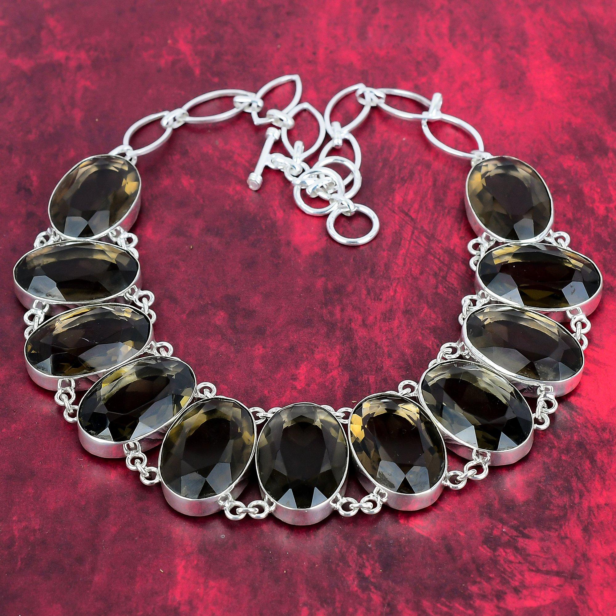 Красивое граненое ожерелье из драгоценного камня дымчатого топаза, ювелирные изделия ручной работы, уникальное ювелирное ожерелье из стерлингового серебра 925 пробы Adjustable with 18 inches коричневый