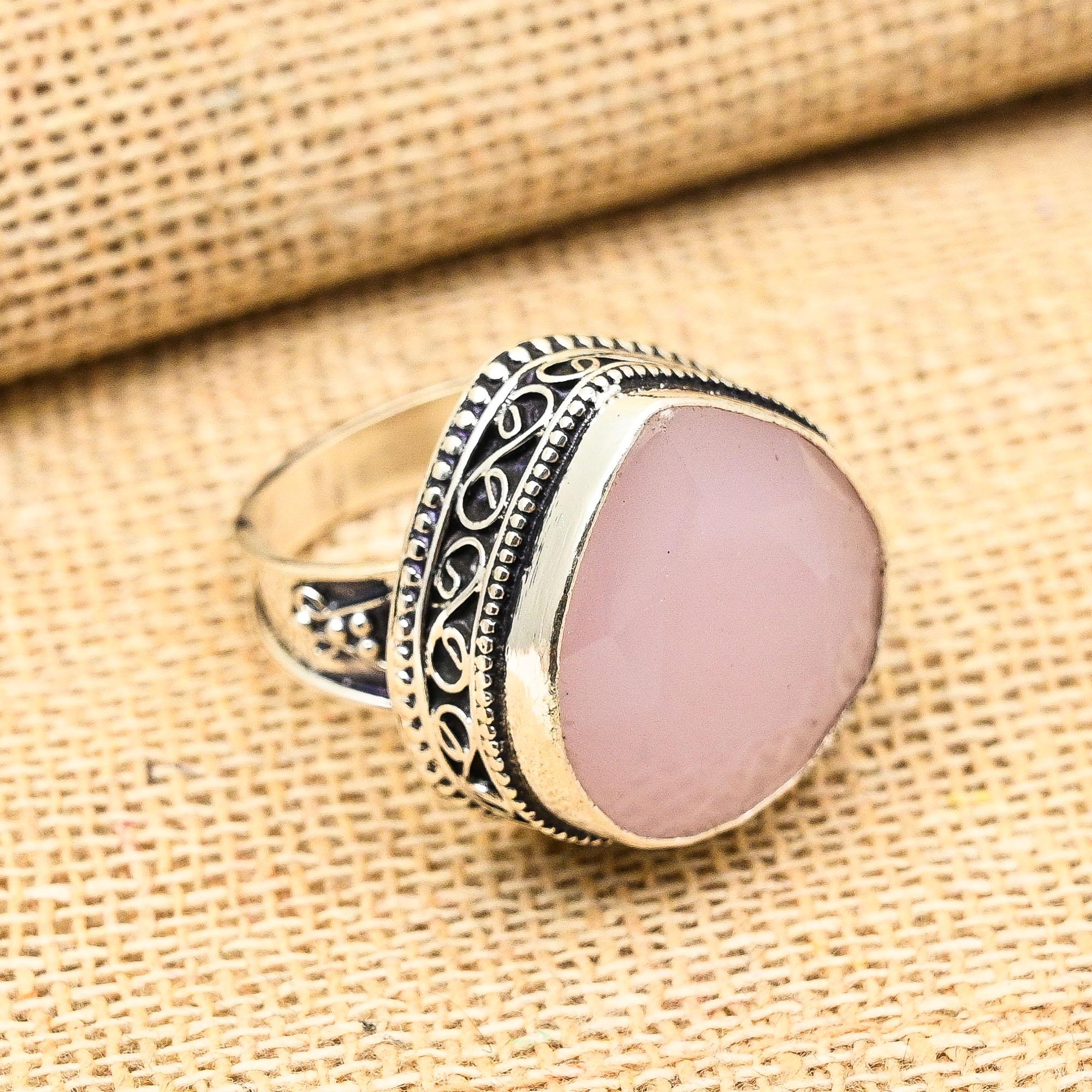 Красивое ювелирное кольцо из стерлингового серебра 925 пробы с розовым халцедоном и драгоценным камнем ручной работы 12 розовый