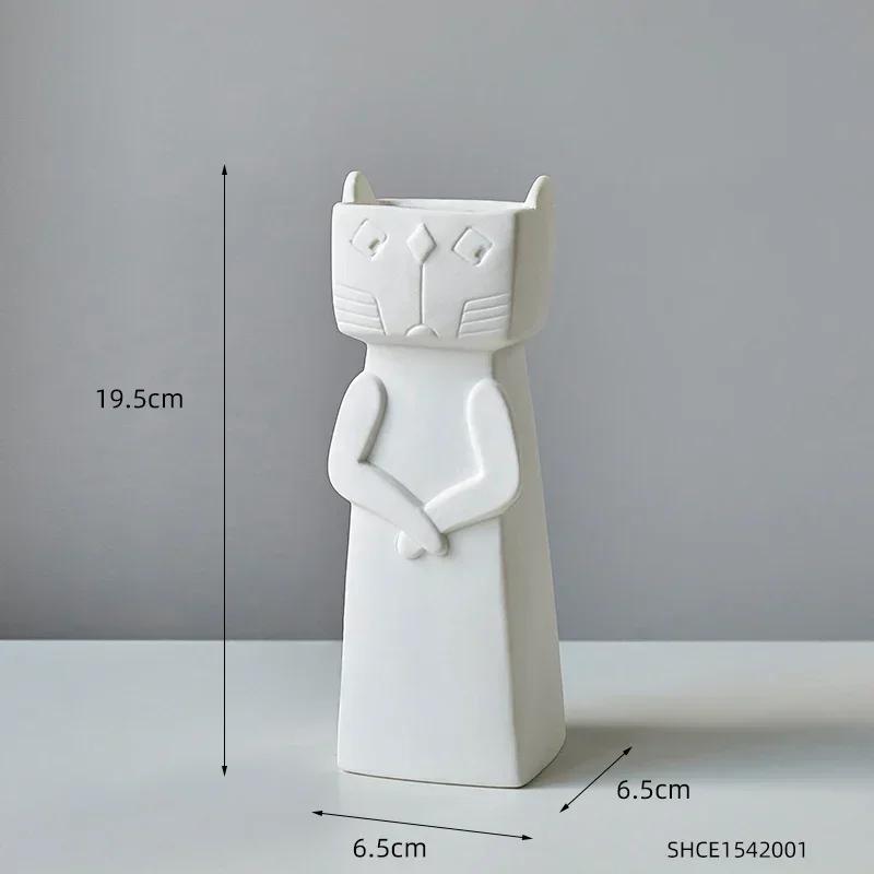 Красивые белые вазы для кошек Керамические изделия Интерьер гостиной Украшения для рабочего стола Простая фарфоровая цветочная композиция Цветочный горшок