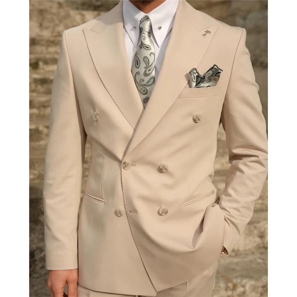 Красивые костюмы цвета слоновой кости для мужчин, двубортный официальный Блейзер, свадебный смокинг для жениха, 2 предмета, пиджак и брюки, Terno Masculino