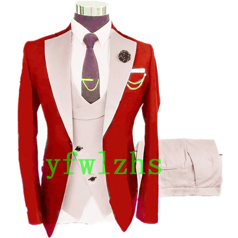 Красивые смокинги для жениха на одной пуговице, мужские костюмы для свадьбы/выпускного вечера/ужина, лучший блейзер (пиджак + брюки + жилет + ...