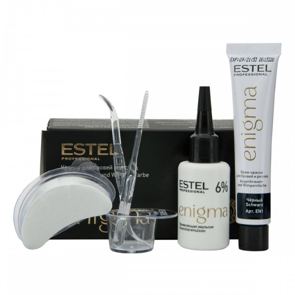 Краска для бровей и ресниц Estel Enigma 2х20 мл - это ультрамягкая формула краски обеспечивает превосходный стойкий результат окрашивания. Палитра включает модные оттенки и позволяет идеально подобрать цвет бровей и ресниц к цвету волос. Компоненты легко смешиваются и дозируются. Красящая смесь пластична, удобна для нанесения, содержит мерцающий пигмент. Краска проста и безопасна в применении. Экономична в использовании.