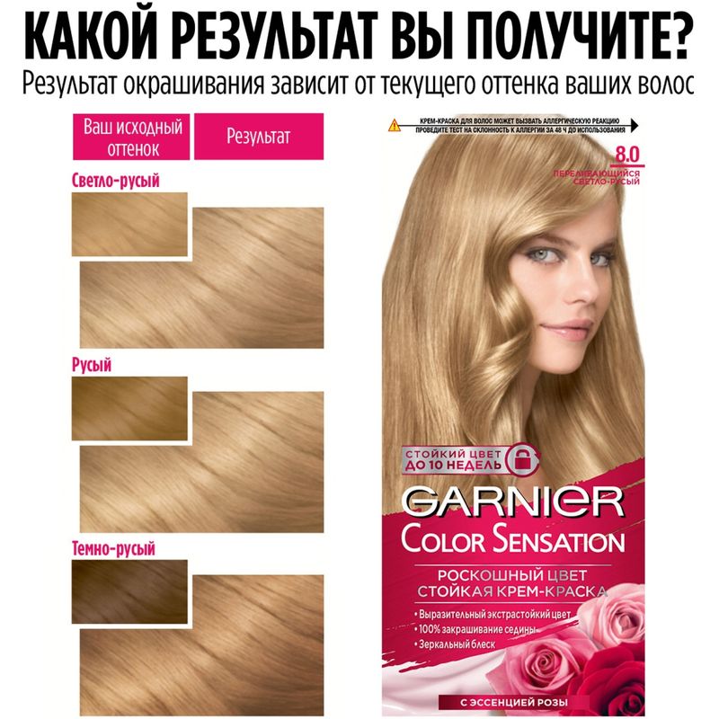 Краска для волос Garnier Color Sensation Роскошный цвет тон 8.0, переливающийся светло-русый 110 мл