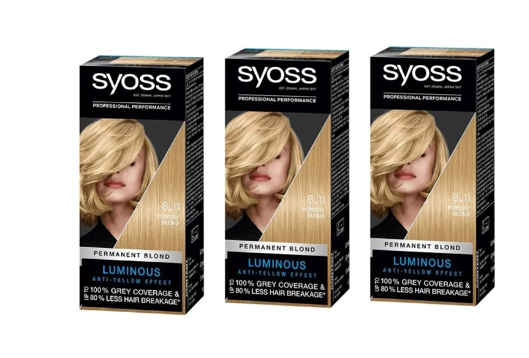 Стойкая крем-краска для волос Syoss Пудровый блонд 8_11. Сияющий блонд без нежелательной желтизны и седины. Концентрированные цветовые пигменты глубоко проникают в волокна волоса, позволяя добиться нейтрализации желтизны и до 100% закрашивания седины. Профессиональный уход против повреждений реставрирует поврежденные связи в структуре волоса и делает их более мягкими и гладкими для визуально улучшенного качества волос