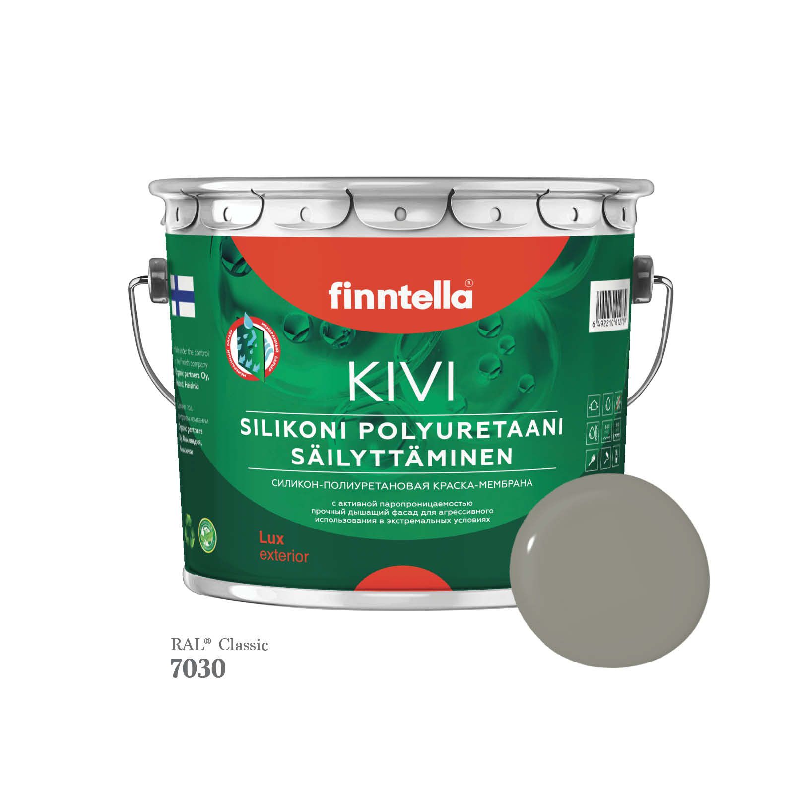 Краска фасадная для наружных работ. Силиконовая. УФ-стойкая FINNTELLA KIVI, цвет RAL7030 К, Серый, KIVI RAL