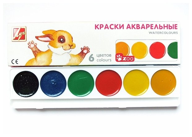 Краски акварельные 1 шт./6 цветов, разноцветный, пенал, ЛУЧ Zoo 19С 1246-08 (1538949), 19С 1246-08