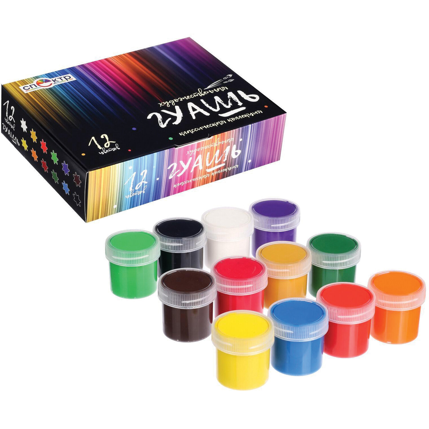 Краски гуашь 12 шт./12 цветов, 40 мл, банка, картонная коробка, СПЕКТР Радуга (91С-202)