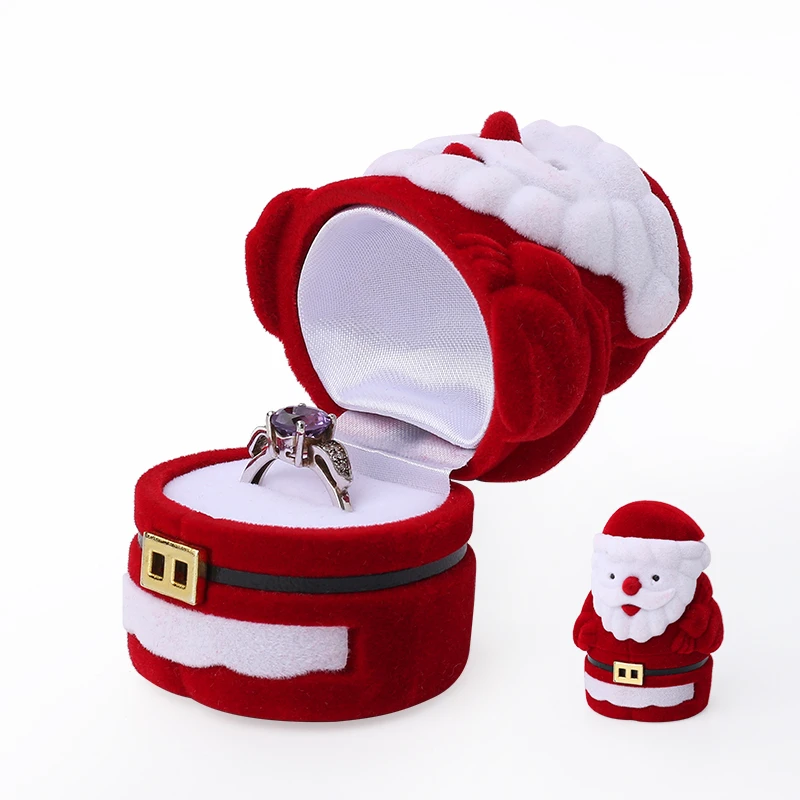 Красная Вельветовая Милая картонная коробочка для колец и украшений с Санта Клаусом, серьги, ожерелье, женский ювелирный держатель для влюб...