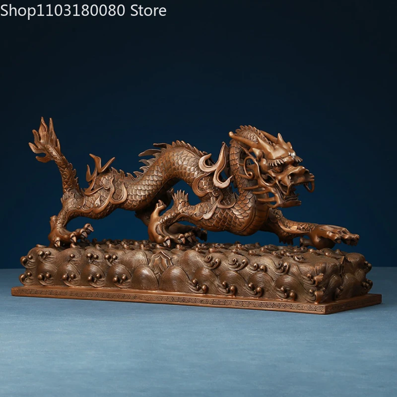 Красная Медная Статуя Дракона с резьбой, скульптура китайского фэншуй, Декор для дома и офиса, большой размер 57 см, 45 см