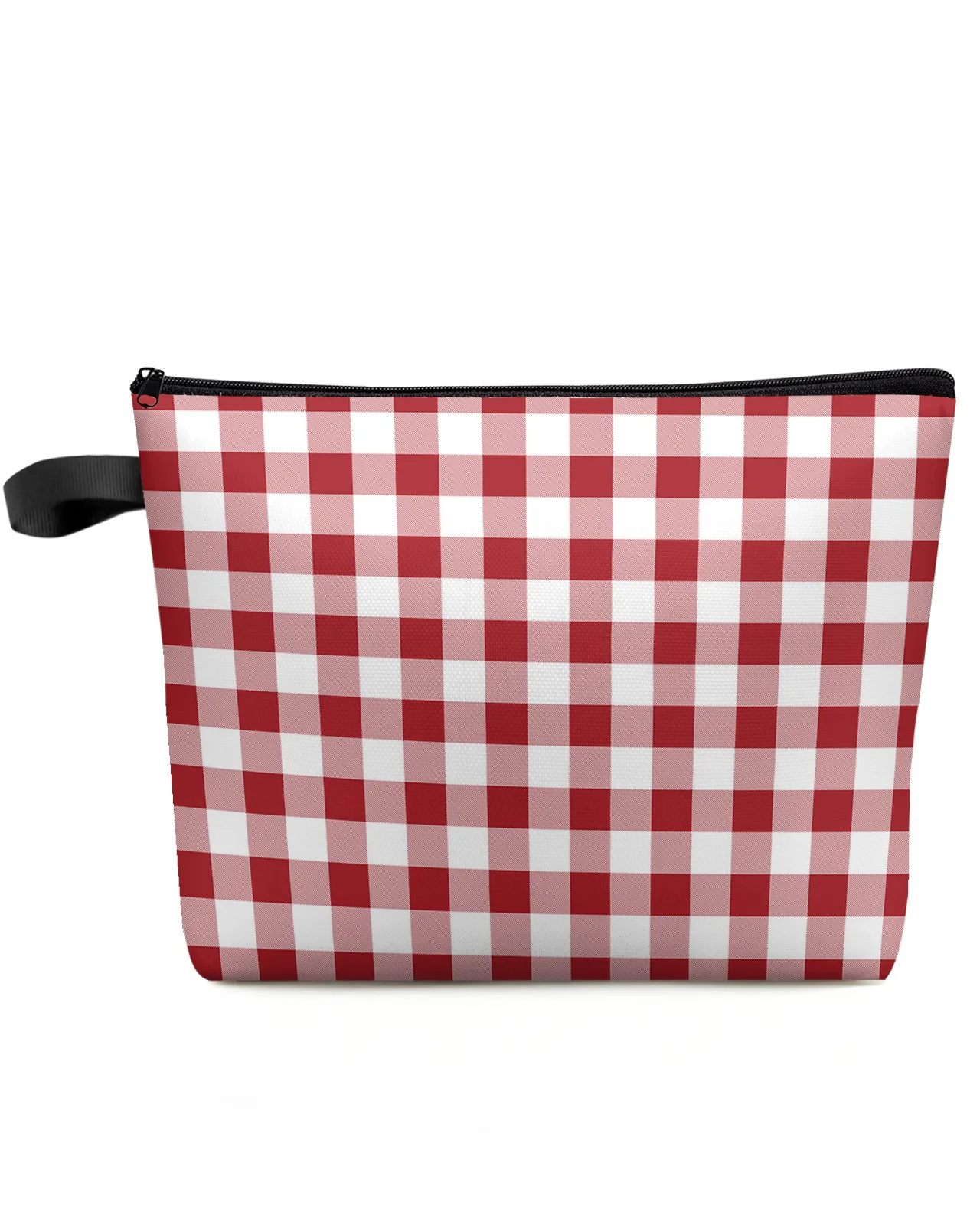 Красная клетчатая Сумочка для косметики в пасторальном стиле, женская сумка для путешествий, косметичка для женщин, органайзер для унитаза, детский карандаш для хранения