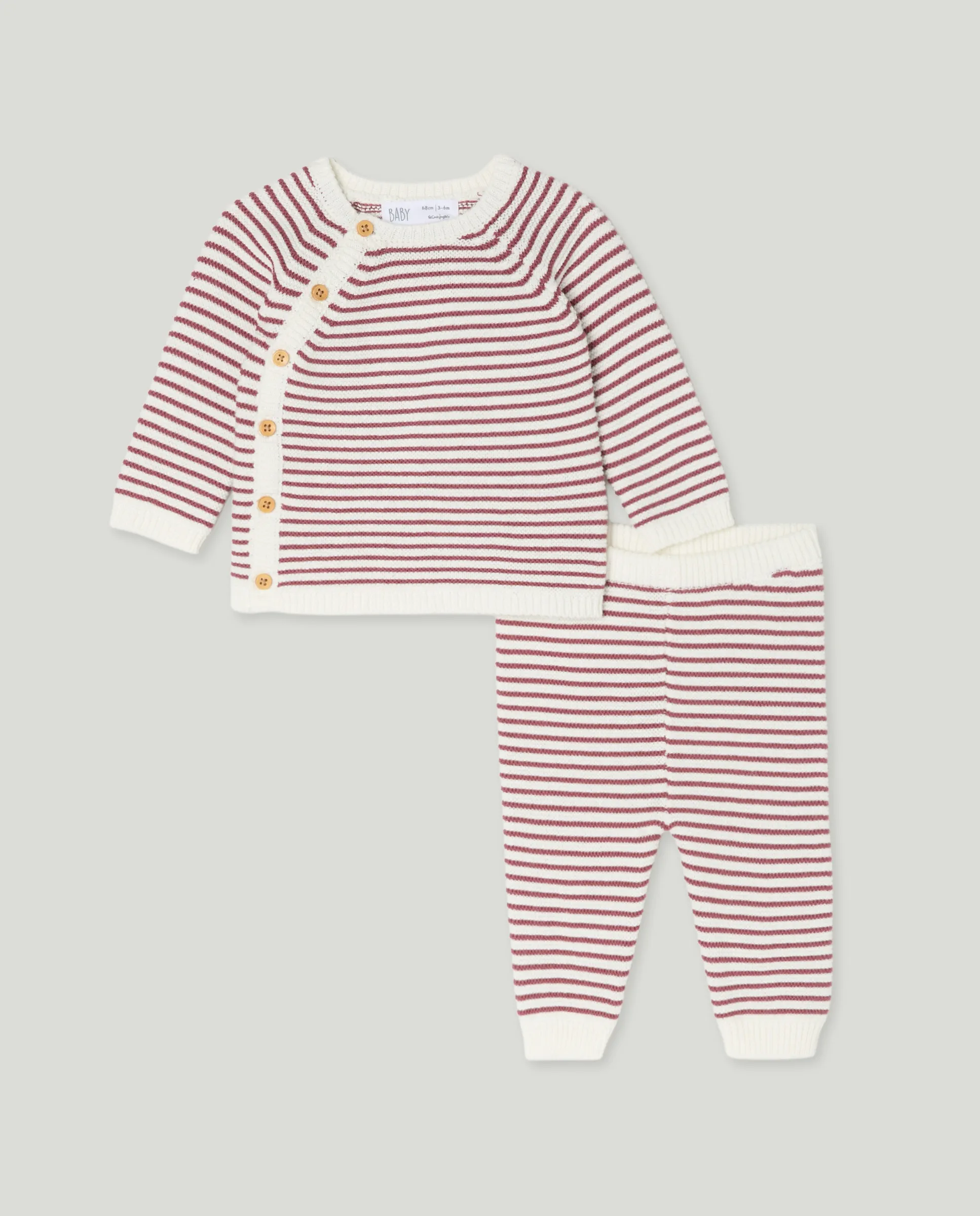 Детский трикотажный комплект в рубчик с полосками Baby El Corte Inglés, темно-розовый